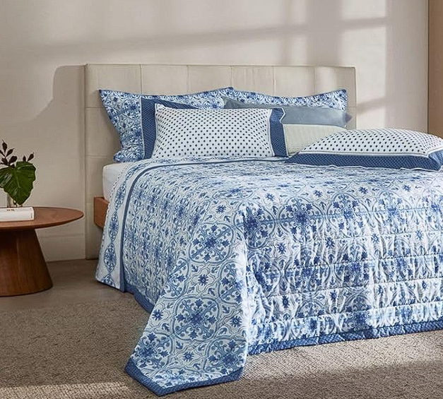 Em tecido 100% algodão Fio Penteado, percalle 180 fios de excelente qualidade. Um clássico inspirado nos azulejos portugueses, a Coleção Sant Anna é marcante e extremamente refinada.